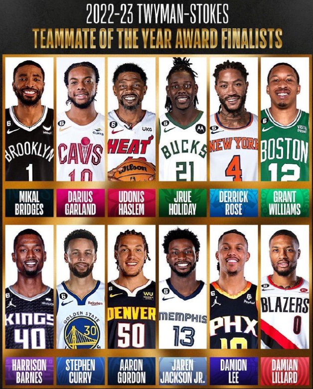 NBA公布年度最佳队友提名:库里利拉德领跑